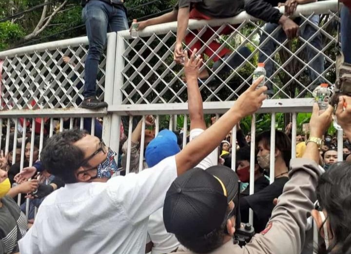 “Tadi kita menandatangani aspirasi dari tuntutan saudara-saudara kita, untuk diteruskan ke pemerintah pusat. Salah satunya menolak Omnibus Law,” kata Ketua DPRD Banyuwangi I Made Cahyana Negara kepada wartawan usai menemui dan berdialog dengan ribuan peserta demonstran.
