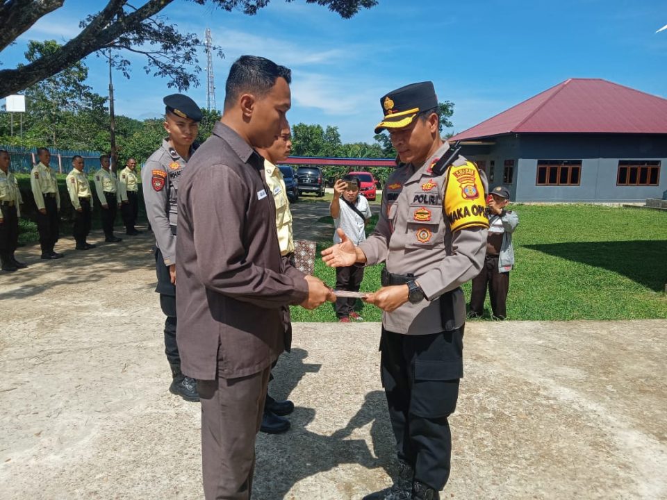 Kapolres Kutai Barat AKBP Kade Budiyarta SIK yang diwakili Wakapolres Kompol Ahmad Abdullah resmi menutup Pendidikan Dasar (Diksar) Satpam Angkatan ke-22 Gada Pratama dan Angkatan ke-5 Gada Madya di Gedung BPU Kantor Desa Mencimai Kecamatan Barong Tongkok Kutai Barat, Sabtu, (27/4/2024)