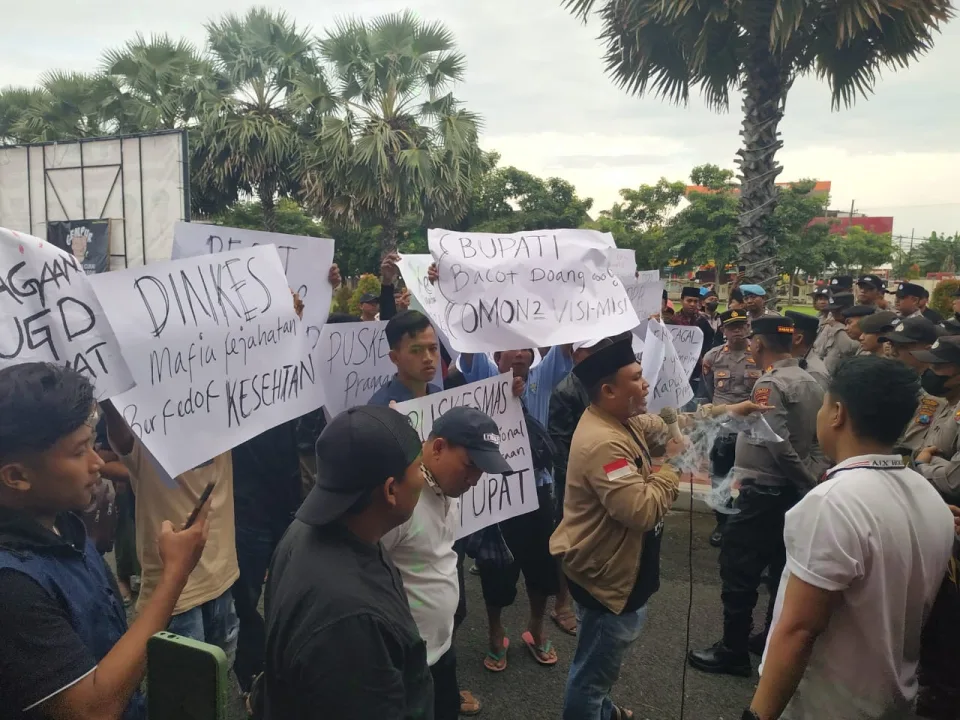 Tuntutan masyarakat Gempar Bupati Sumenep bertanggung jawab penuh atas kelalaian peristiwa tragedi kemanusiaan, dan pecat kepala Puskesmas Pragaan dan KaSuBag TU