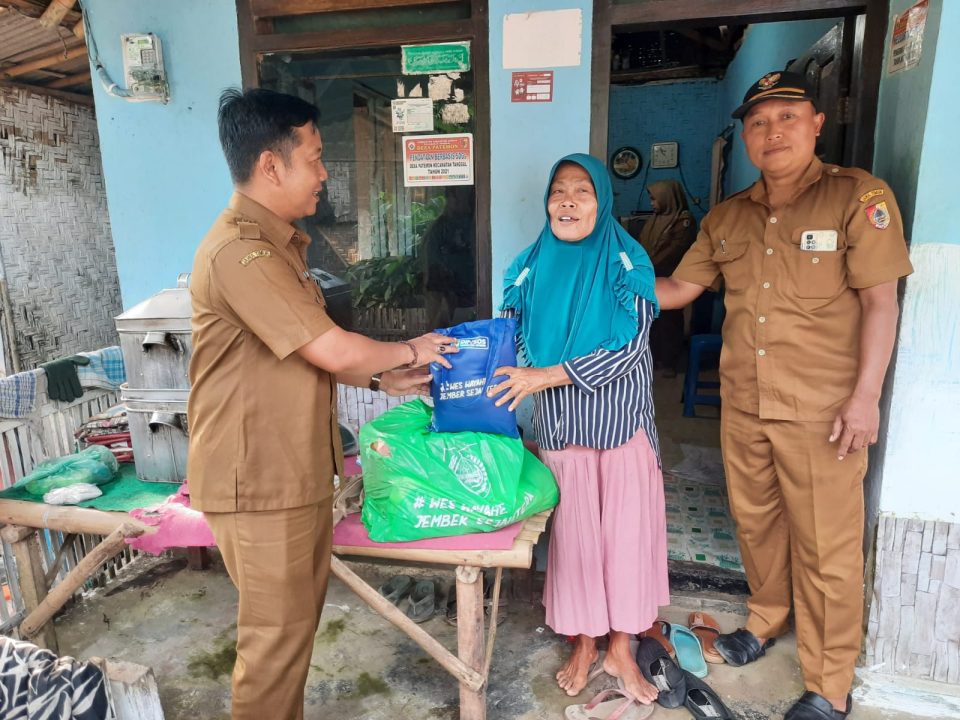 Dinas Sosial (Dinsos) pemkab Jember salurkan bantuan kepada Mislan (75) warga desa Patemon kecamatan Tanggul Jember dalam bentuk sembako.