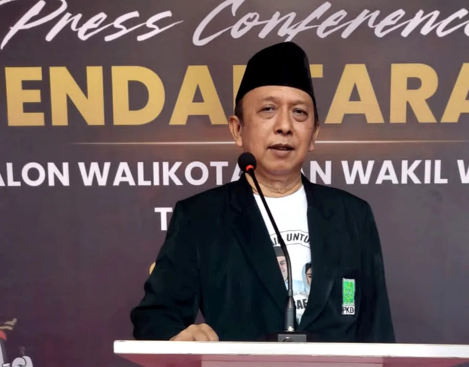 DPC PKB Kota Blitar Totok Sugiarto mengantarkan pasangan Syauqul Muhibbin bakal calon Walikota dan Elim Tyu Samba Wakil Walikota ke KPU Kota Blitar untuk mendaftarkan diri dalam Pilkada 2024, diikuti ribuan rombongan pendukung lintas partai.