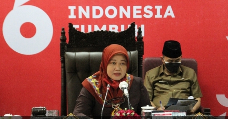 Bupati Blitar Rini Syarifah saat menyampaikan Jawaban atas Pandangan Umum (PU) Fraksi Fraksi terkait Ranperda Perubahan TA 2021.