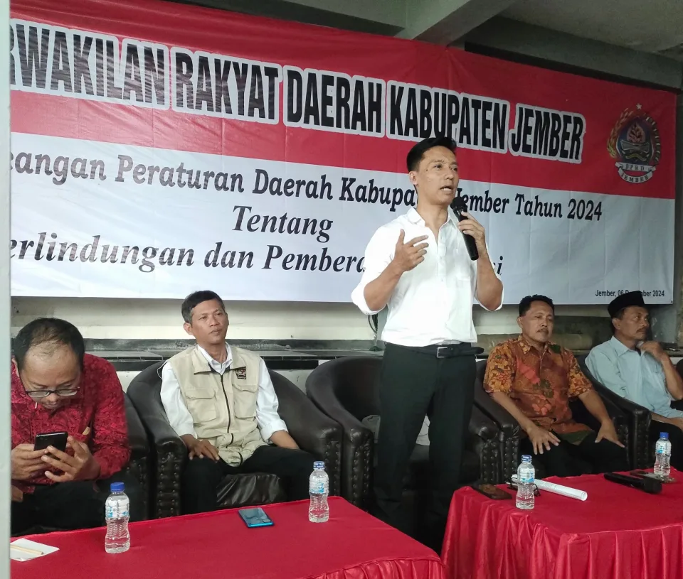 Diacara sosilasasi rancangan perda yang digelar di Aula Café Koloni Kelurahan Baratan, Kecamatan Patrang Jumat (6/12/2024) Nuki menyampaikan, pentingnya pemberdayaan petani memiliki wawasan keilmuan agar penerapan praktek lapangan sesuai harapan.