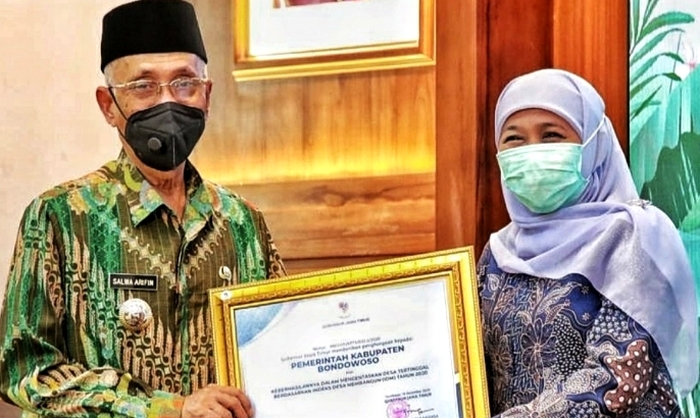 Pemerintah Kabupaten (Pemkab) Bondowoso menerima piagam penghargaan Indeks Desa Membangun (IDM) 2020 dari Pemerintah Provinsi (Pemprov) Jawa Timur. Ini karena Bondowoso berhasil mengentaskan desa tertinggal.