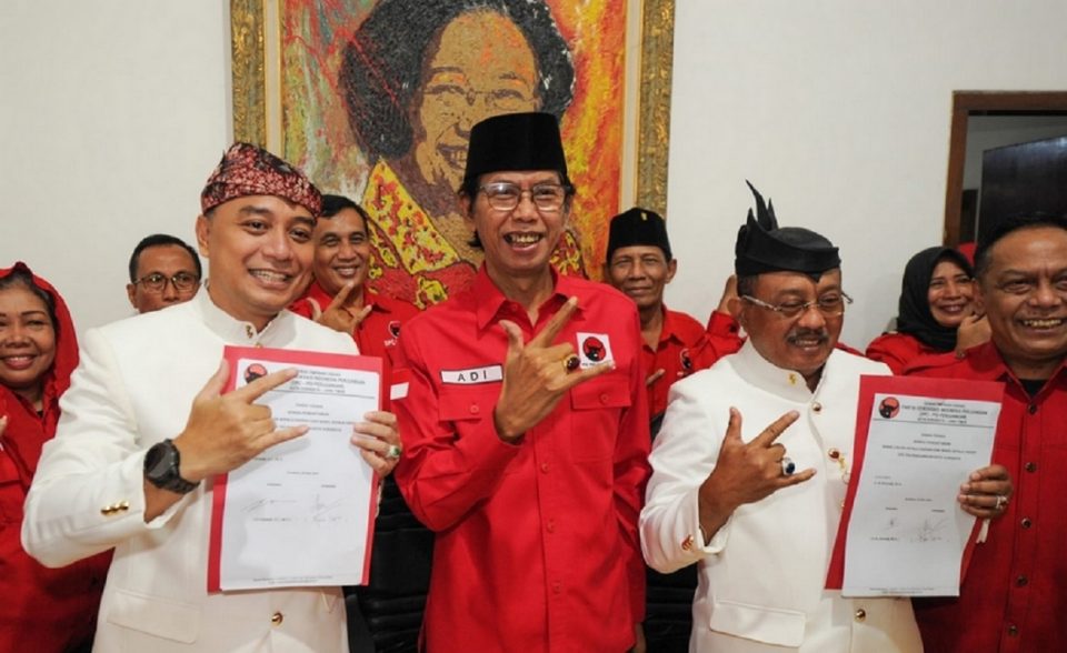 “Hari ini saya bersama dengan Cak Armuji mendaftar sebagai bakal calon wali kota dan wakil wali kota,” Wali Kota Surabaya Eri di Kantor Dewan Pimpinan Cabang PDI Perjuangan Kota Surabaya, Kamis.
