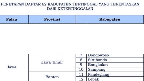Selain Bondowoso, juga ada tiga kabupaten lain di Provinsi Jawa Timur (Jatim) lepas dari status kabupaten tertinggal. Yakni, Situbondo, Bangkalan, dan Sampang.