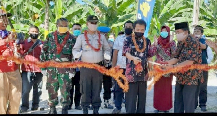 Kapolsek Kadur AKP Moh Tarsun Hidayah bersama Forkopimcam, meresmikan dan membentuk kampung tangguh Covid-19 di Desa Gagah, Kecamatan Kadur Pamekasan.