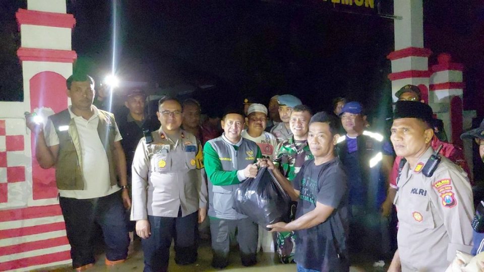 Togiman menjelaskan, pada kesempatan itu Forkopimda membagikan nasi bungkus dari dapur umum untuk warga yang terdampak banjir dibantu oleh Bhabinkamtibmas dan Babinsa.