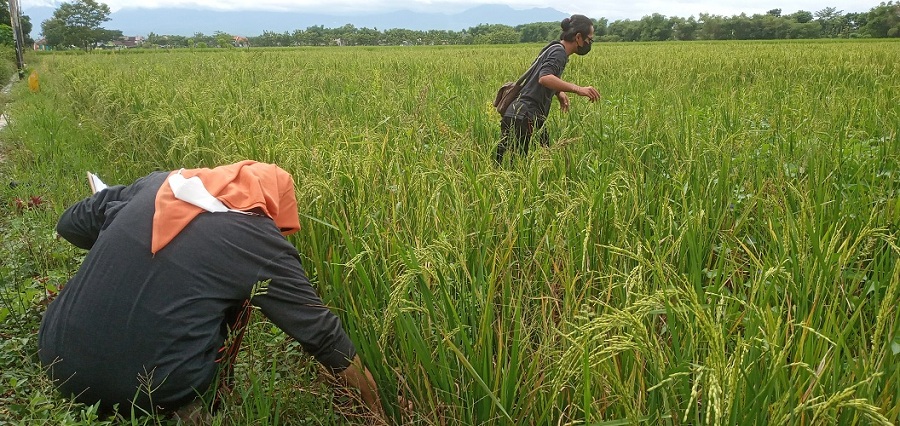 Tarmuji, SP, Kepala Wilayah Kerja Laboratorium Pengamatan Hama dan Penyakit (LPHP) Tanaman Provinsi Jawa Timur di Madiun, bersama timnya langsung berada di lokasi, melakukan  pengamatan dan pemeriksaan tanaman padi yang menjadi ‘korban’ serangan virus, Jumat (23/12/2022).