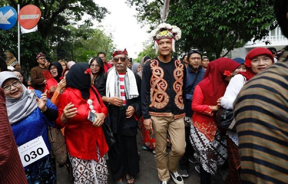“Temanya jadul dan baju adat, Nusantara. Baju adat Nusantara. Ini ada dari Madura, ini Cirebon, ini dari NTT, ini dari Tapanuli,” jelas Ganjar.