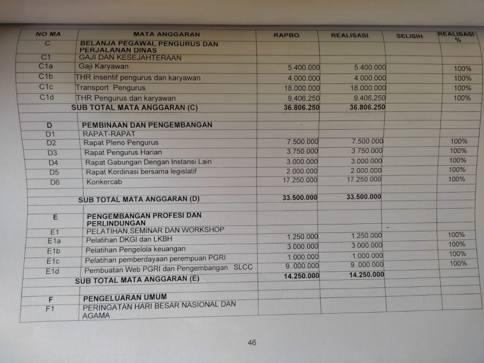Ironisnya, di tengah banyaknya kader PGRI yang mengeluh adanya kenaikan iuran sepihak tersebut muncul laporan penggunaan keuangan khsususnya berkaitan dengan besaran honor pengurus PGRI dengan jumlah yang sangat fenomenal.