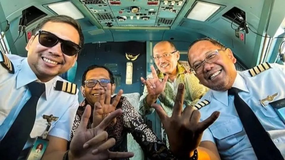 Postingan cawapres nomor urut 3, Mahfud Md, foto bersama pilot dan kopilot Garuda Indonesia sambil pose tiga jari di kokpit pesawat berbuntut panjang. Kini, pilot dan kopilot tersebut dipanggil oleh Garuda Indonesia.