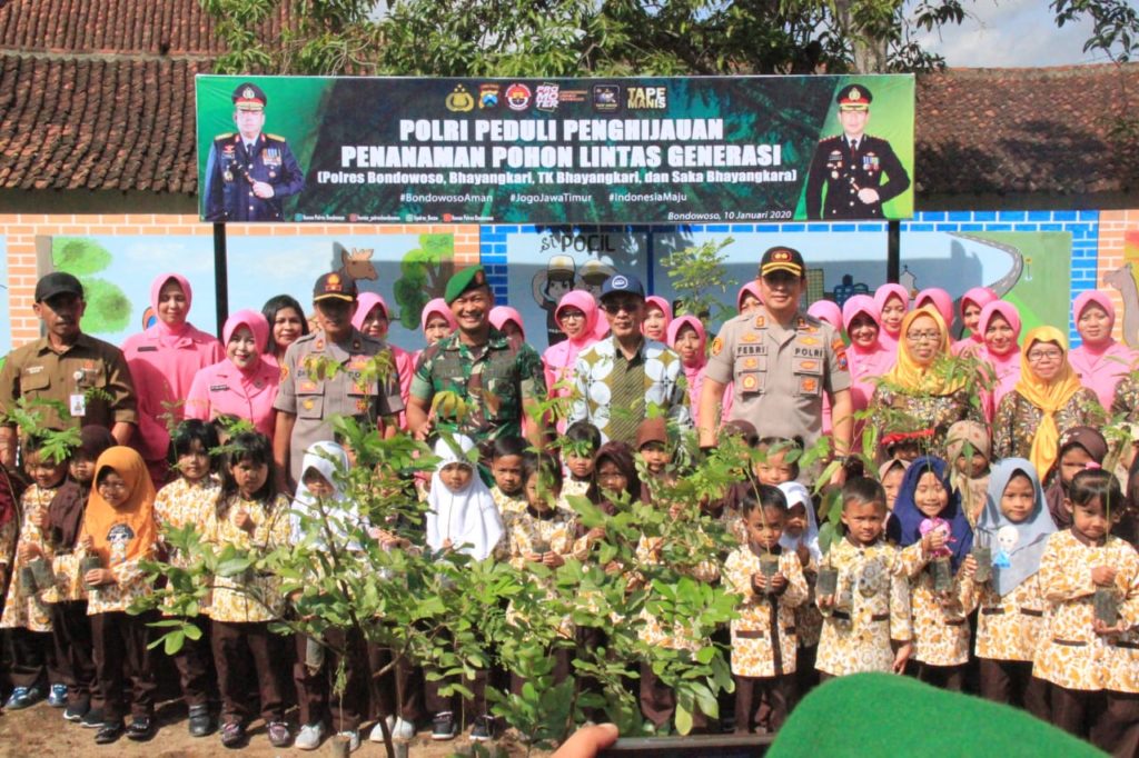 Bertema “Polri Peduli Penghijauan, Penanaman Pohon Lintas Generasi” Polres Bondowoso menggelar penanaman Ribuan Pohon Lintas Generasi dalam memperingati hari Sejuta Pohon Sedunia. Jum’at pagi (10/1/2020).