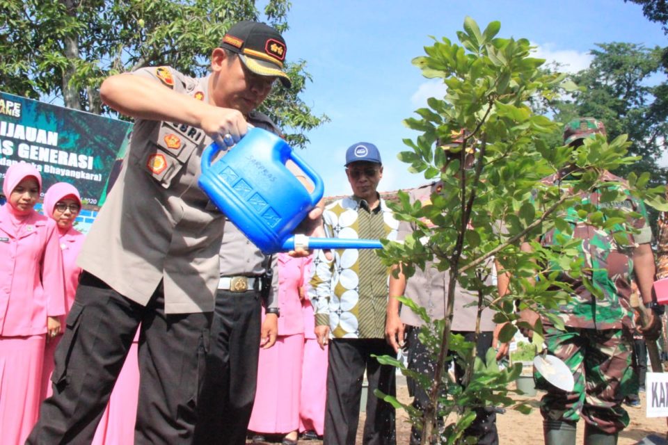 Kapolres Bondowoso AKBP Febriansyah, S.I.K., memberikan arahan dan semangat menghijaukan Bumi Bondowoso, kemudian dilanjutkan dengan melakukan Penanaman Bibit Pohon Secara Simbolis oleh Kapolres, Bupati beserta Dandim 0822 Bondowoso.
