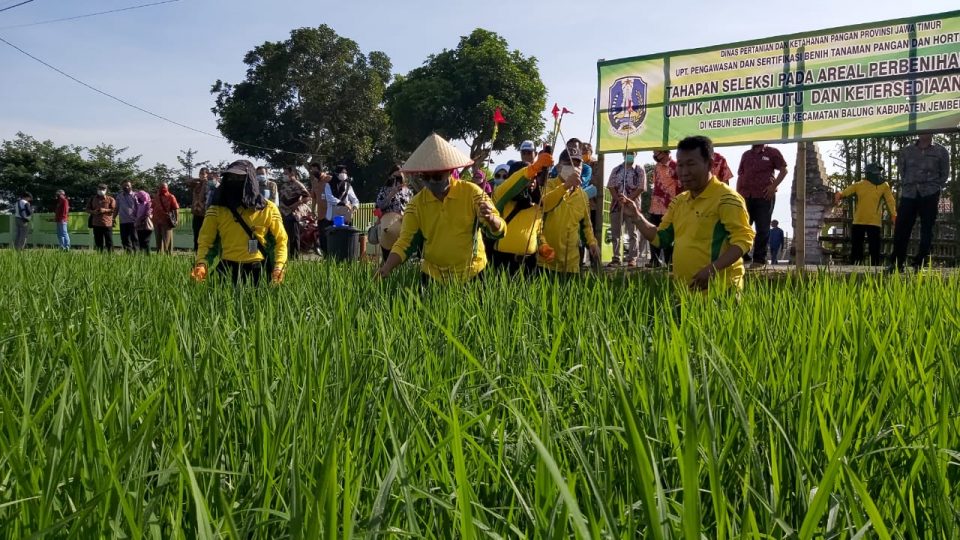 Demi menggalakkan semangat memperkuat kemandirian pangan nasional di era new normal itulah, pagi ini Kamis, 25 Juni 2020, Kepala Dinas Pertanian dan Ketahanan Pangan Provinsi Jawa Timur, Ir. Hadi Sulistyo, M.Si menghadiri Kegiatan Kesiapan Tahapan Seleksi Pada Areal Perbenihan Padi Untuk Jaminan Mutu dan Ketersediaan Benih, di Kebun. Gumelar, yg berlokasi di desa Gumelar, Kec. Balung, Kabupaten Jember.