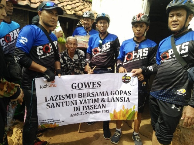 Gowes Lazismu bersama Gopas, sekaligus berbagi dengan kaum duafa. komunitas Gopas ini memberikan santunan kepada anak yatim dan Lansia, di Kecamatan Pasean, Pamekasan. Minggu (29/12/2019) pagi. Komunitas Pasean (Gopas) tersebut melakukan gowes setiap hari Minggu.