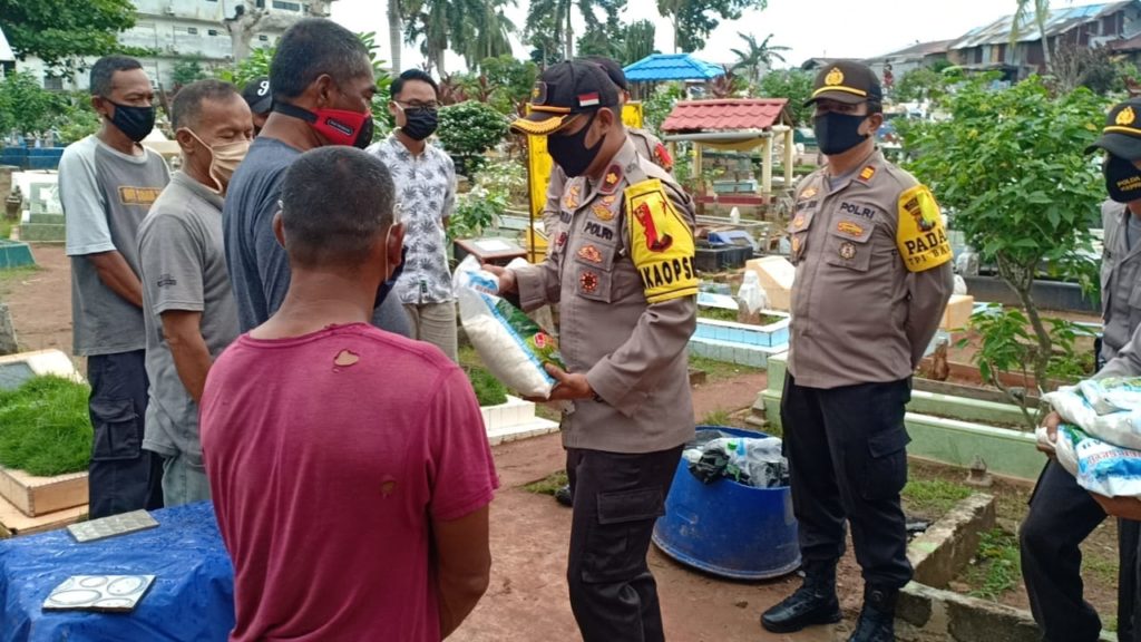 “Pembagian beras ini menyasar para penggali kubur dan penjual kembang, tukang ojek, warga yang di PHK dari tempat kerjanya, janda dan lansia, buruh becak, pengojek dan pemulung,”ujar Wakapolres Tanjungpinang Kompol Agung Gima Sunarya.