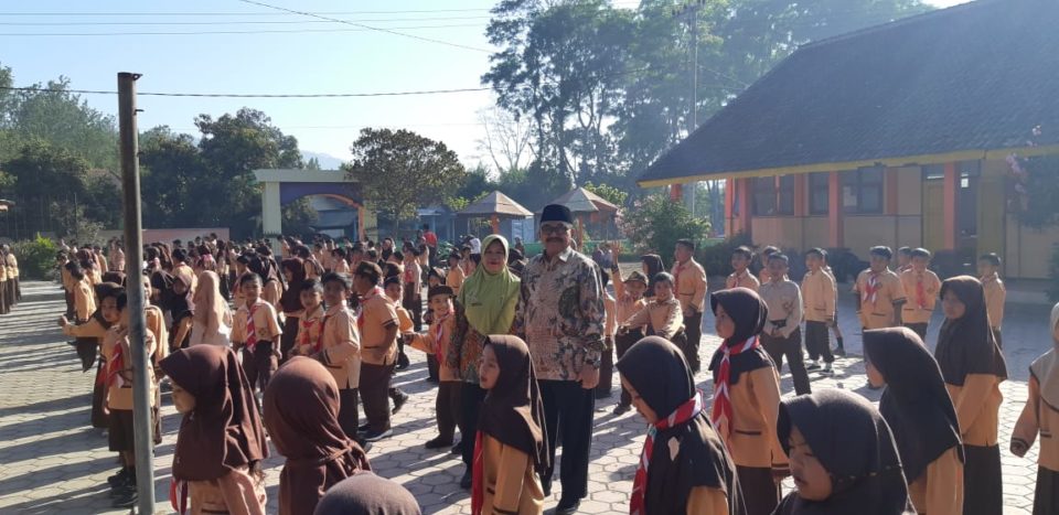 Kepala Dinas Pendidikan dan Kebudayaan Kabupaten Bondowoso, Drs.H.Harimas.Msi Ikut Senam Pagi Bersama Kepala Sekola dan Guru serta Siswa-siswi SDN Sempol