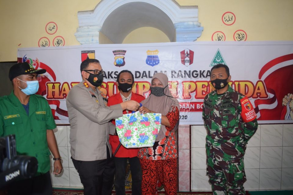 Pembagian sembako yang diserahkan langsung oleh Kapolres Bondowoso AKBP Erick Frendriz itu dilakukan dalam rangka Hari Sumpah Pemuda.