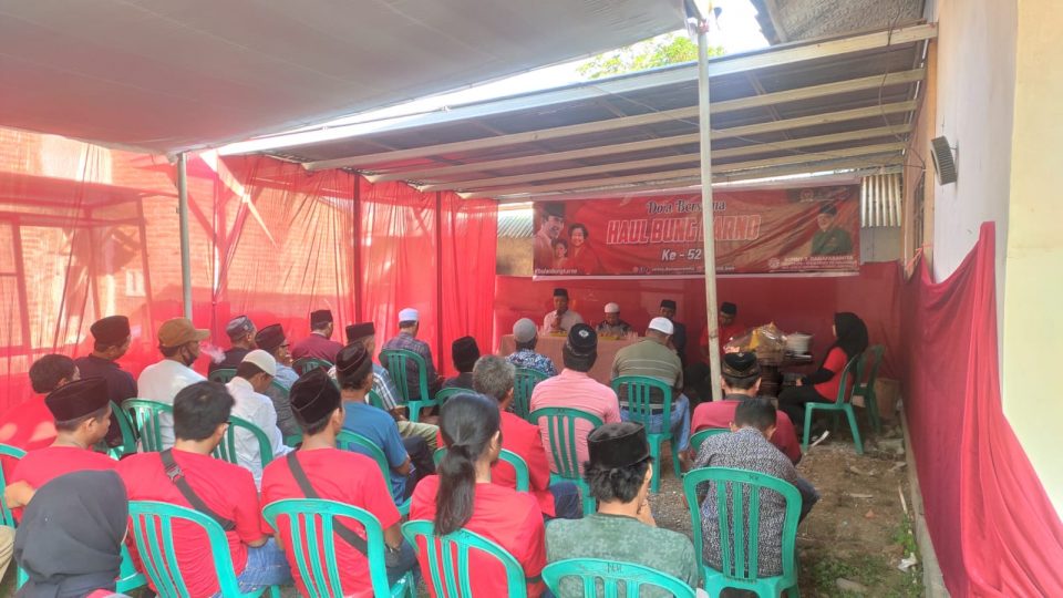 BONDOWOSO, IndonesiaPos – Memperingati Haul Bung Karno tahun 2022, Komunitas Se-Tretanan Dhibik Bondowoso (STD), menggelar kegiatan Do’a bersama dan bakti sosial di Desa Suger Lor, Kecamatan Maesan, Selasa (21/06/2022). Komunitas binaan Anggota DPR RI, Sonny T Danaparamita itu, juga melakukan pemotongan tiga tumpeng, sebagai filosofi dari Tri Sakti Bung Karno.