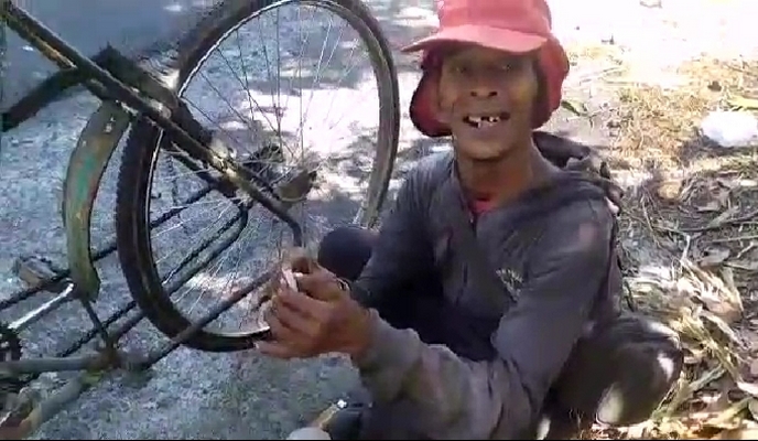 Dia pantang menyerah, untuk menyambung hidupnya, dia setiap harinya harus mengayuh becak tua miliknya hanya untuk mencari barang rongsokan di sepanjang jalan Prajekan sampai Klabang.