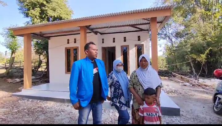 Seorang janda bernama Hamidah, yang tinggal bersama seorang yatim di gubug reot dusun Pandan desa Panglegur Kabupaten Pamekasan, tak henti-hentinya berucap syukur bahagia karena rumahnya yang sudah direnovasi.