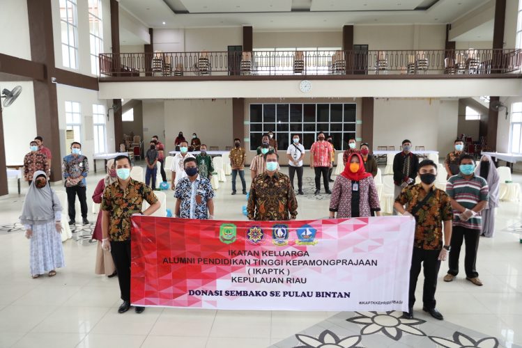 Ikatan Keluarga Alumni Pendidikan Tinggi Kepamongprajaan (IKAPTK) Provinsi Kepri bersama IKAPTK Tanjungpinang dan Bintan menyerahkan bantuan sosial kepada masyarakat se-Pulau Bintan di Asrama Haji, Tanjungpinang, Kamis (23/4) petang.