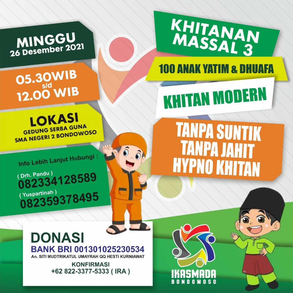 Di tempat yang sama Ketua Ikamasda Bondowoso Yusdeni Lanasakti mengemukakan, Khitanan Massal tahun 2021 ini yang ketiga kalinya.