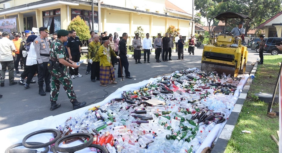Lintar mengungkapkan, BB yang dimusnahkan diantaranya, 500 botol minuman beralkohol berbagai merk, 0,30 gram sabu, 38 gram ganja, 5000 butir pil berlogo Y warna putih, 1000 logo DMP warna kuning, jadi total miras ada 2.525 botol berbagai merk.