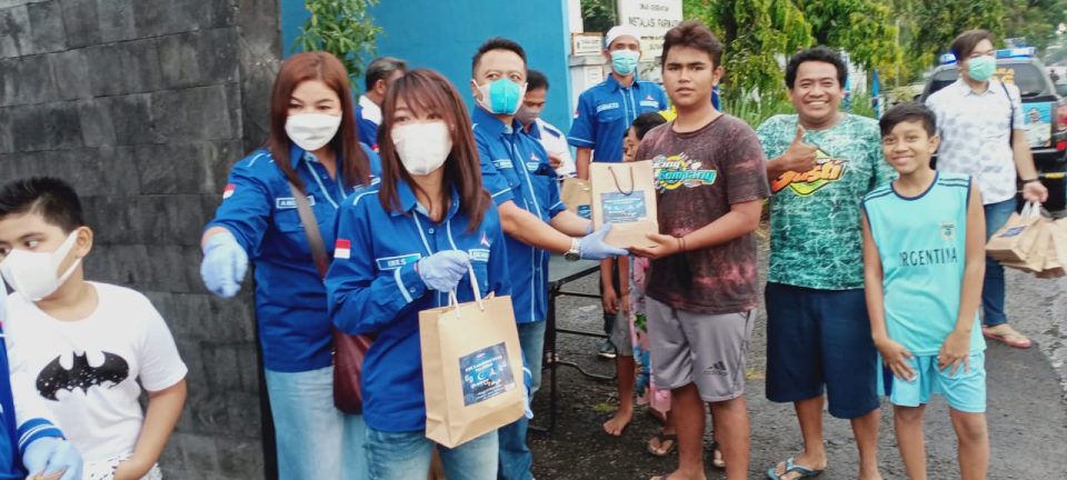 Sebanyak 300 bungkus takjil dibagikan oleh Pengurus Partai Demokrat kabupaten Blitar kepada warga didepan kantor DPC jalan Raya Garum. Minggu, (24/4/2021).