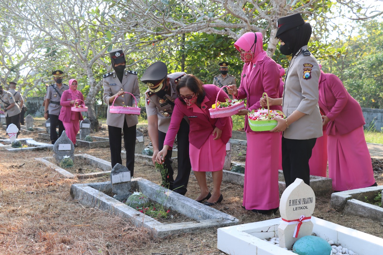 Ziarah dan tabur bunga dipimpin langsung  Kapolres Pamekasan, AKBP Rogib Triyanto bersama sejumlah personil pejabat utama, anggota Polres Pamekasan hingga anggota Bhayangkari.