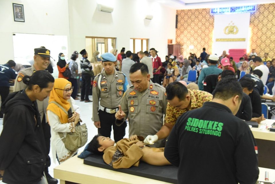 Acara bakti social tersebut dihadiri Waka Polres Bondowoso Kompol Jose Indra, PJU Polres dan kepala RS Bhayangkara.
