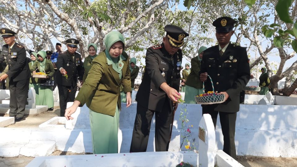 MENJELANG Hari Ulang Tahun (HUT) Tentara Nasional Indonesia (TNI) ke-78, Kodim 0826 Pamekasan Berziarah Nasional ke Taman Makam Pahlawan (TMP) Panglegur Jalan Raya Panglegur, Tlanakan, Pamekasan, Rabu (04/10/2023).