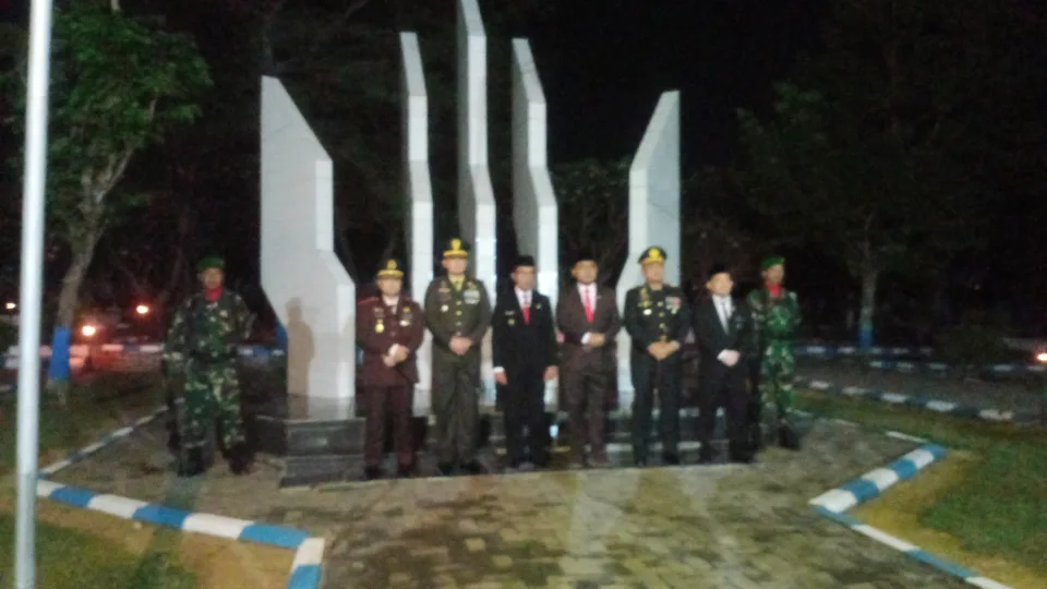 Peserta upacara tampil mengenakan pakaian resmi dengan keberadaan nyala obor di sekitar makam pahlawan yang mewujudkan suasana khidmat dan berjalan lancar.