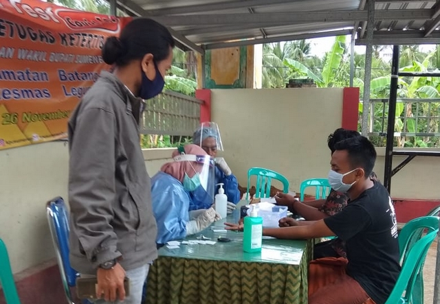 Menjelang Pemilihan Bupati dan wakil bupati Sumenep, KPPS dan Linmas di Kecamatan Batang Batang di rapid test, untuk mencegahan virus corona, di puskesmas Legung Timur, Rabu (02/12/2020).