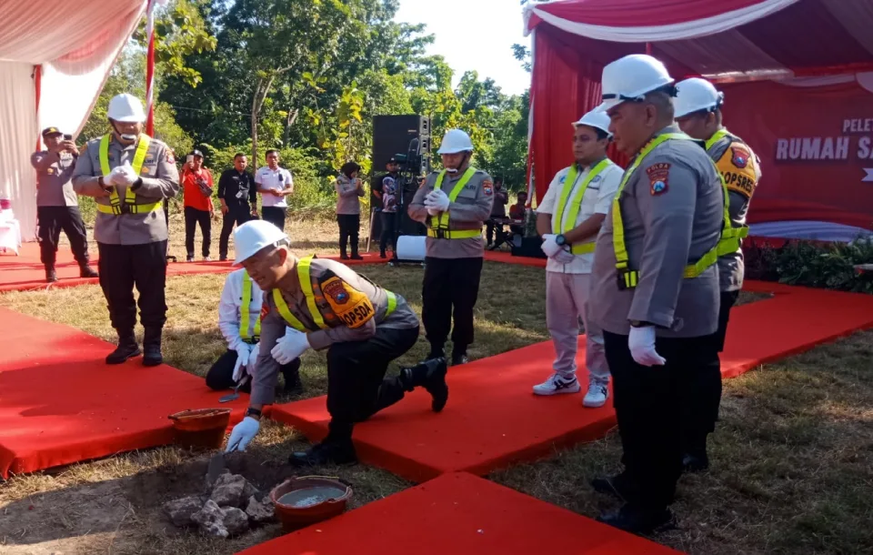 Kapolda Jatim, Irjen Pol Imam Sugianto melakukan peletakan batu pertama pembangunan gedung Rumah Sakit Bhayangkara di Jalan Raya Nyalaran Kelurahan Kowel, Kabupaten Pamekasan Madura, Jawa Timur. Rabu 15/5/2024.