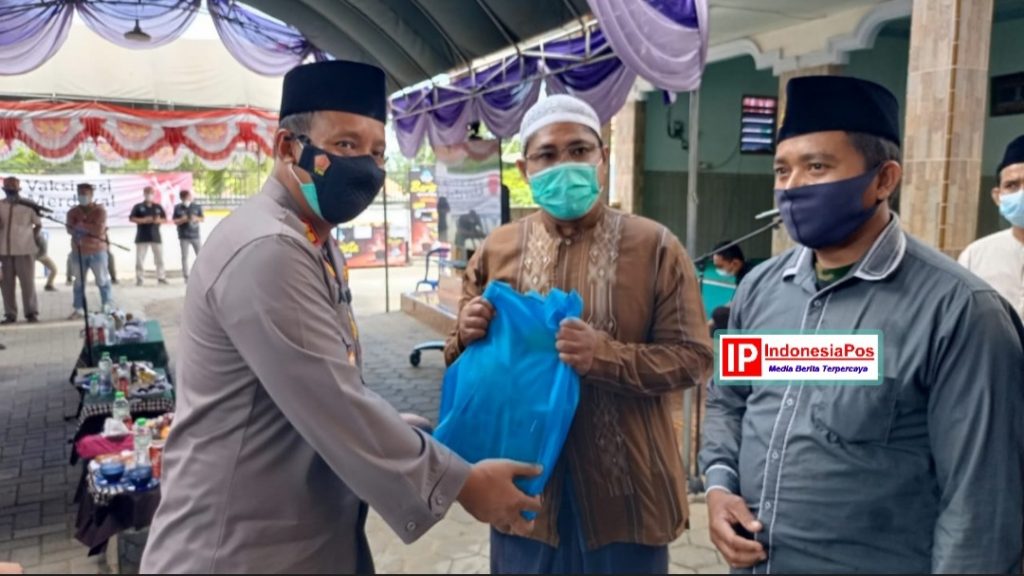 Pada kesempatan tersebut Kapolres bersama Forkopimda Pamekasan secara simbolis memberikan bantuan sembako dan masker kepada pengasuh Pondok Pesantren Asy Syafiiah, untuk diberikan kepada peserta vaksin.