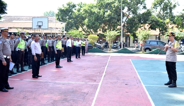 Kabag Ren Kompol Wartono, S.H, Kapolsek dan Kapolsubsektor Jajaran Polres Bondowoso, 1 (Satu) Peleton Dalmas, dan 1 Peleton PNS Polres Bondowoso.