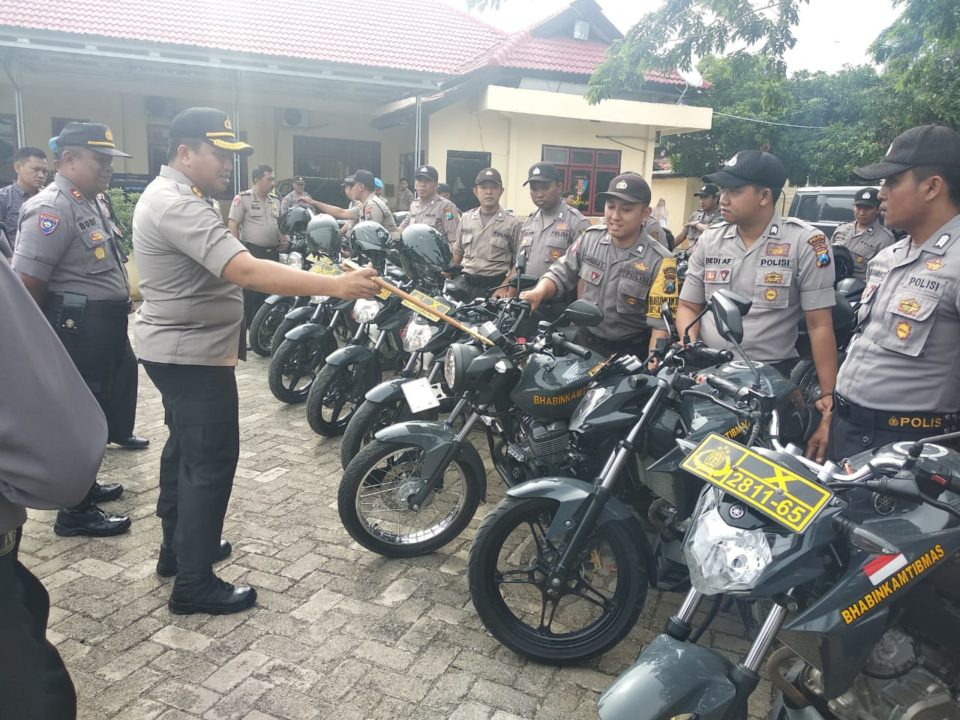 Jelang pelantikan Kepala Desa terpilih hasil Pilkades serentak tahun 2019 di Kabupaten Sampang, Kapolres AKBP Didit BWS, S.I.K, MH lakukan pengecekan ratusan kendaraan dinas Polres dan Polsek jajaran di halaman Mapolres Sampang, Senin pagi (13/01/2020).