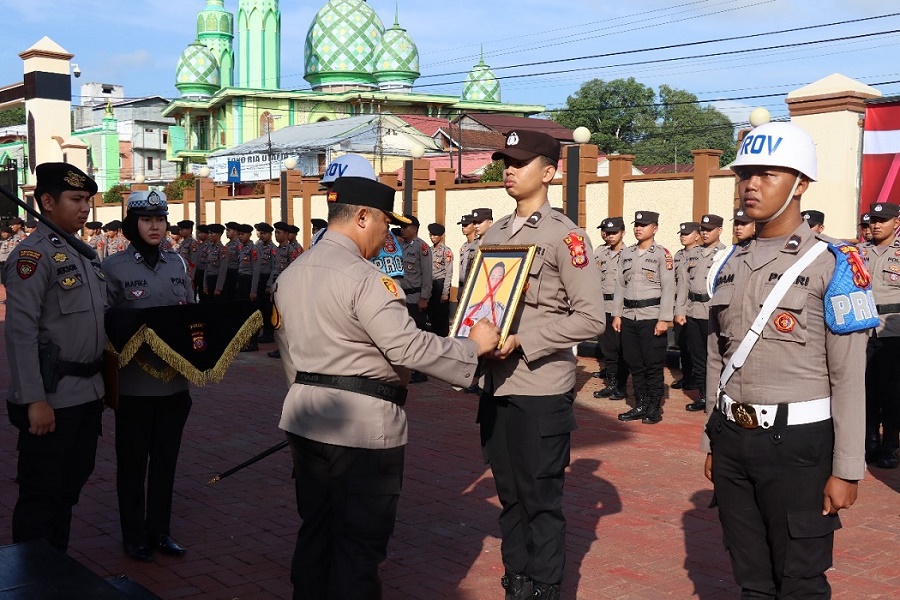Upacara tersebut dipimpin oleh Kapolres AKBP Heri Rusyaman, dihadiri Para Pejabat Utama (PJU, Wakapolres Kompol Ahmad Abdullah, Kabagops, Kabag Ren, Kabag SDM, Kabag Log, para Kasat, Kasi, Seluruh Personel Polres dan ASN.