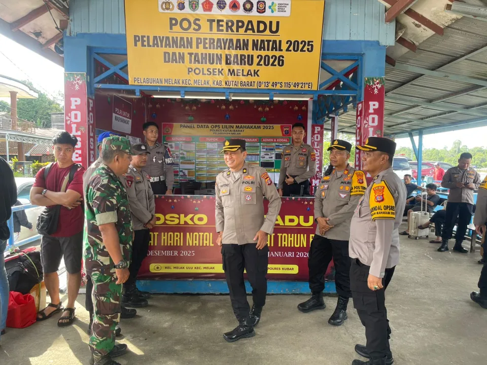 Dalam rangka memastikan keamanan puncak perayaan Natal 2025 dan Tahun baru 2026,Kapolres Kutai Barat AKBP Boney Wahyu Wicaksono SiK melakukan kunjungan kerja untuk meninjau langsung kesiapan personel di Pos Terpadu Pelabuhan Melak, Kamis lalu