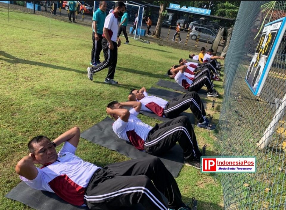 PAMEKASAN,IndonesiaPos – Kapolres Pamekasan AKBP Rogib Triyanto, bersama sejumlah anggotanya mengikuti test kesamaptaan jasmani (TKJ) di hari terakhir, di lapangan Lapangan Sarja Arya Racana, Sabtu (05/3/2022) pagi.
