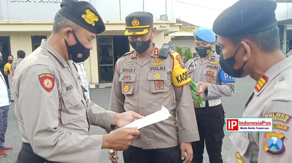 Kapolres Pamekasan AKBP Rogib Triyanto, mengecek kesiapsiagaan dan kekuatan anggotanya, mulai dari tingkat kehadiran anggota sampai dengan kelengkapan terhadap barang inventaris yang ada di halaman Mapolres Pamekasan.