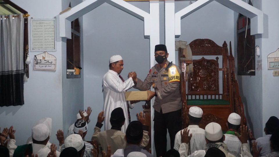 Safari Jum’at tersebut, Rogib Triyanto memberikan edukasi tentang Vaksin COVID-19, terkait manfaat vaksin dan program vaksinasi yang di laksanakan Polres Pamekasan.