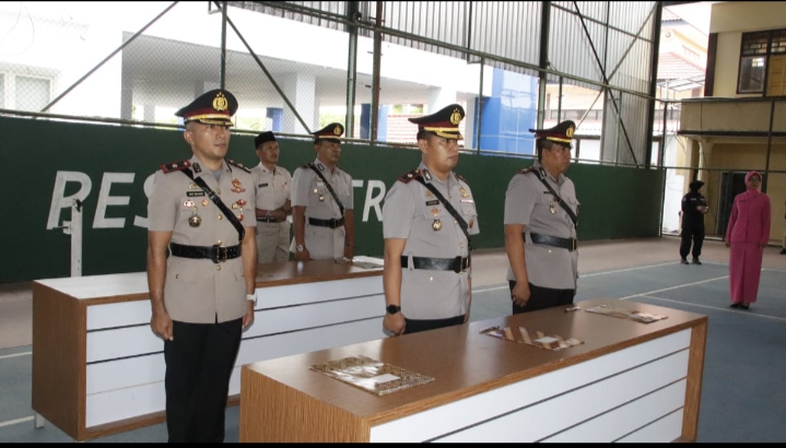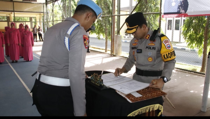 Polres Sumenep Madura Jawa Timur menggelar upacara serah terima jabatan (Sertijab) Wakapolres, Kasatpolairud, Kapolsek Talango dan Kapolsek Masalembu. Jumat (29/12/2023).