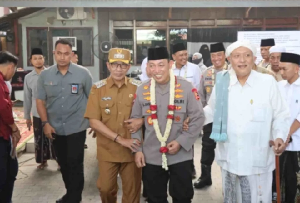 Tampak, Irjen Pol.Drs. Nanang Avianto, Kapolda Jawa Timur mendampingi Kapolri, Gubernur Jawa Timur Khofifah Indar Parawansa dan Dr. KH. Kholillurrahman Bupati Pamekasan, kedatangan mereka disambut langsung oleh Pengasuh Pondok Pesantren Al Hamidy , RKH. Mohammad Rofi Baidawi pada hari Selasa 05/08/2025.