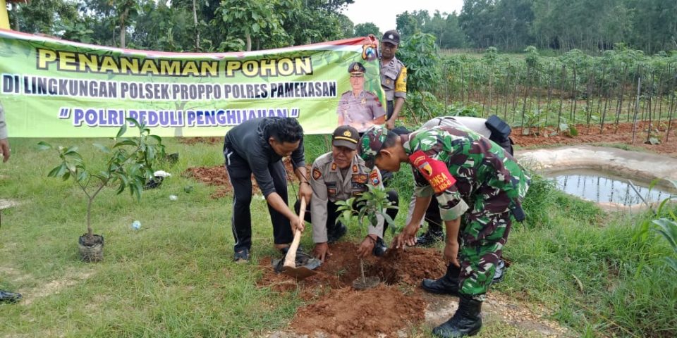 Kepala Desa Panguraian Muhammad Saleh bersama dengan Kapolsek Proppo dan anggota Komisi IV DPRD Pamekasan Khairul Umam dari fraksi PKB, juga unsur TNI dan masyarakat Desa melakukan penghijauan. Itu semua dilakukan untuk mengantisipasi terjadinya banjir dan tanah longsor. Jum’at (10/1/2020).