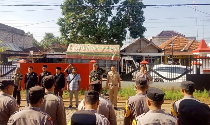 Kapolsek Proppo AKP Bala Hananta pimpin apel pelepasan dan pengamanan pendistribusian Logistik Pemilu 2024 dari PPK Kecamatan Proppo ke 27 PPS se-Kecamatan Proppo di halaman Kantor Camat, Selasa (12/2/2024).