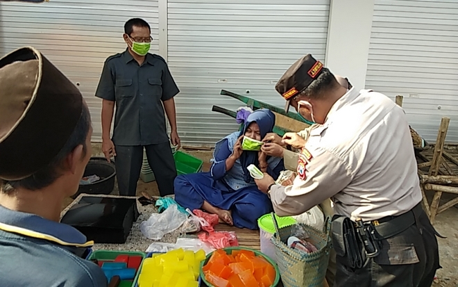 Selain itu AKP J Tirto juga memberikan himbauan kepada para pedagang yang ada didalam pasar Polowijo di Desa Panagguan agar selalu menggunakan masker dan tetap menjaga jarak sebagai keamanan dalam berinteraksi dengan orang lain maupun pelanggan (physical distancing) untuk antisipasi penularah wabah Corona virus yang merebak di wilayah Kabupaten Pamekasan. (ndri).