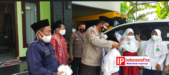 Kapolsek Tlanakan AKP Sahrawi bersama anggotanya membagikan masker gratis. Selasa (25/05/2021). Selain itu, petugas juga menyampaikan himbauan kepada siswa-siswi SD dan SMPI dan Ustad Yayasan Nurul Jadid Desa Panglegur agar tetap mematuhi protokoler kesehatan ( Prokes).